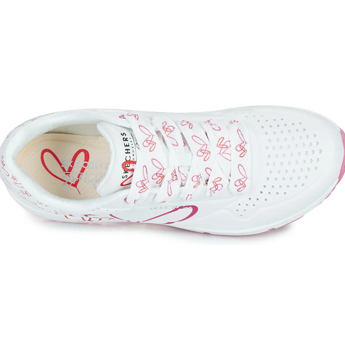 James Goldcrown, Street artiste de renommée internationale spécialisé dans les fresques murales, apporte ses emblématiques dessins de cœurs #Lovewall à Skechers dans le cadre de cette collaboration inspirante. Montrez votre style créatif avec Skechers Street™ x JGoldcrown : Uno – Twin Hearts. Cette basket mode à lacets présente un imprimé du motif de cœur emblématique de l’artiste, une tige en durabuck synthétique, une semelle intérieure en mousse à mémoire de forme Skechers Air-Cooled Memory Foam® et une semelle intermédiaire à coussin d’air Skech-Air® visible.