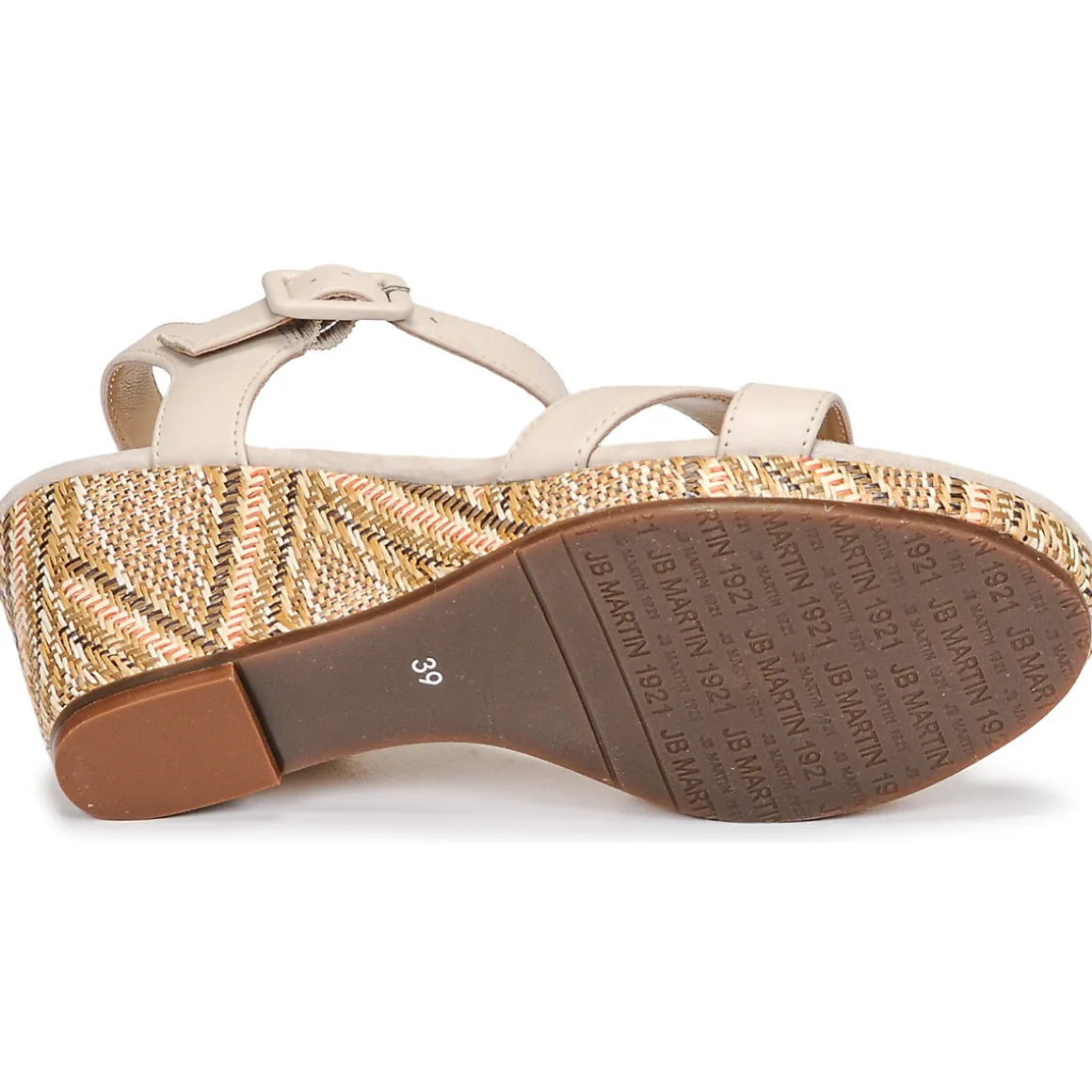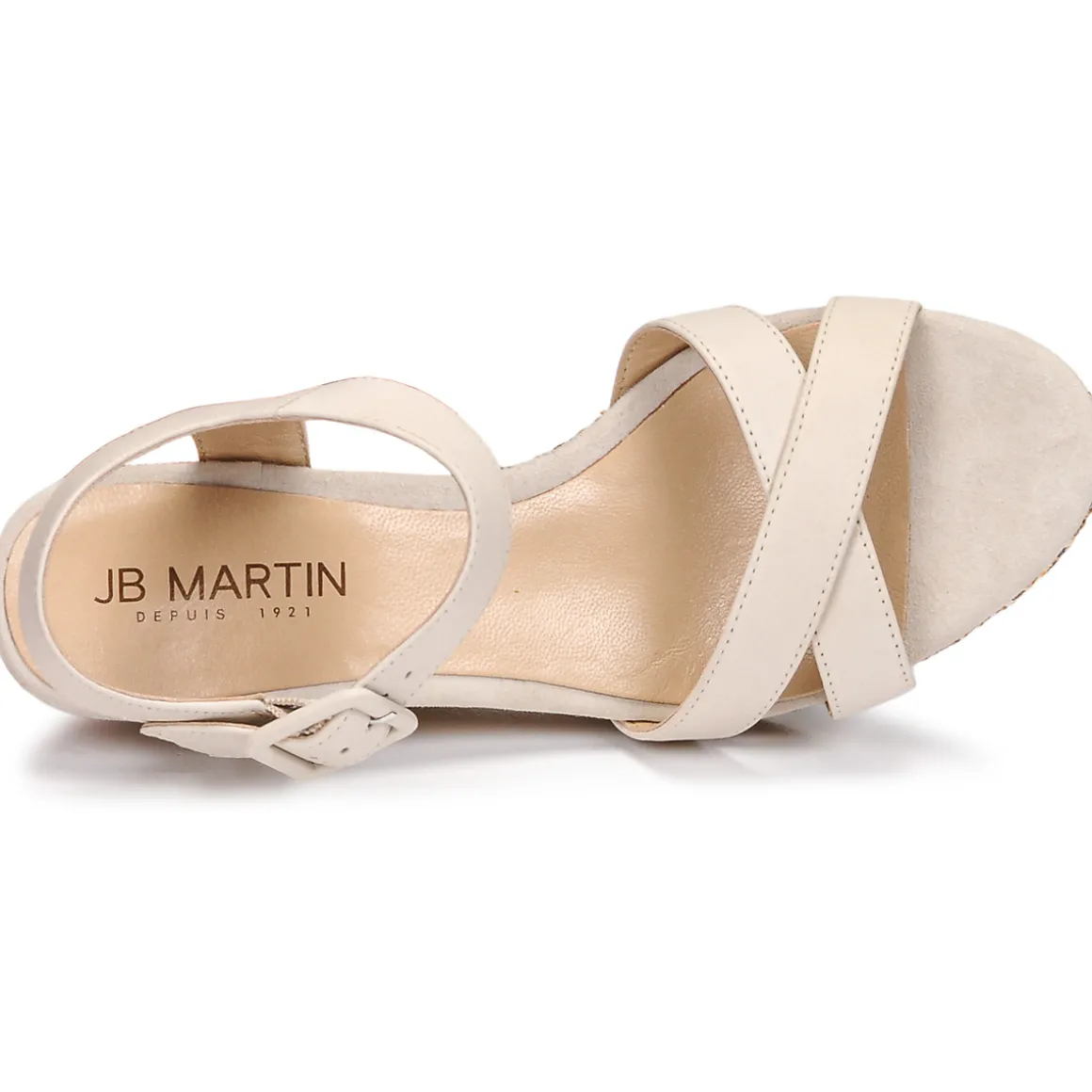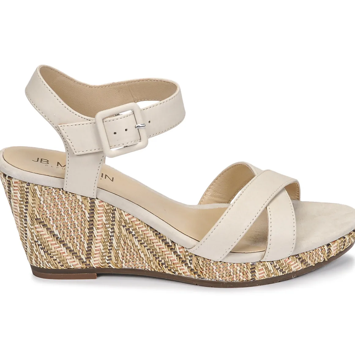 JB Martin signe une sandale confortable et féminine. Ce modèle revendique une conception cuir et un talon compensé. Sa bride est ajustable grâce à une boucle au niveau de la cheville.