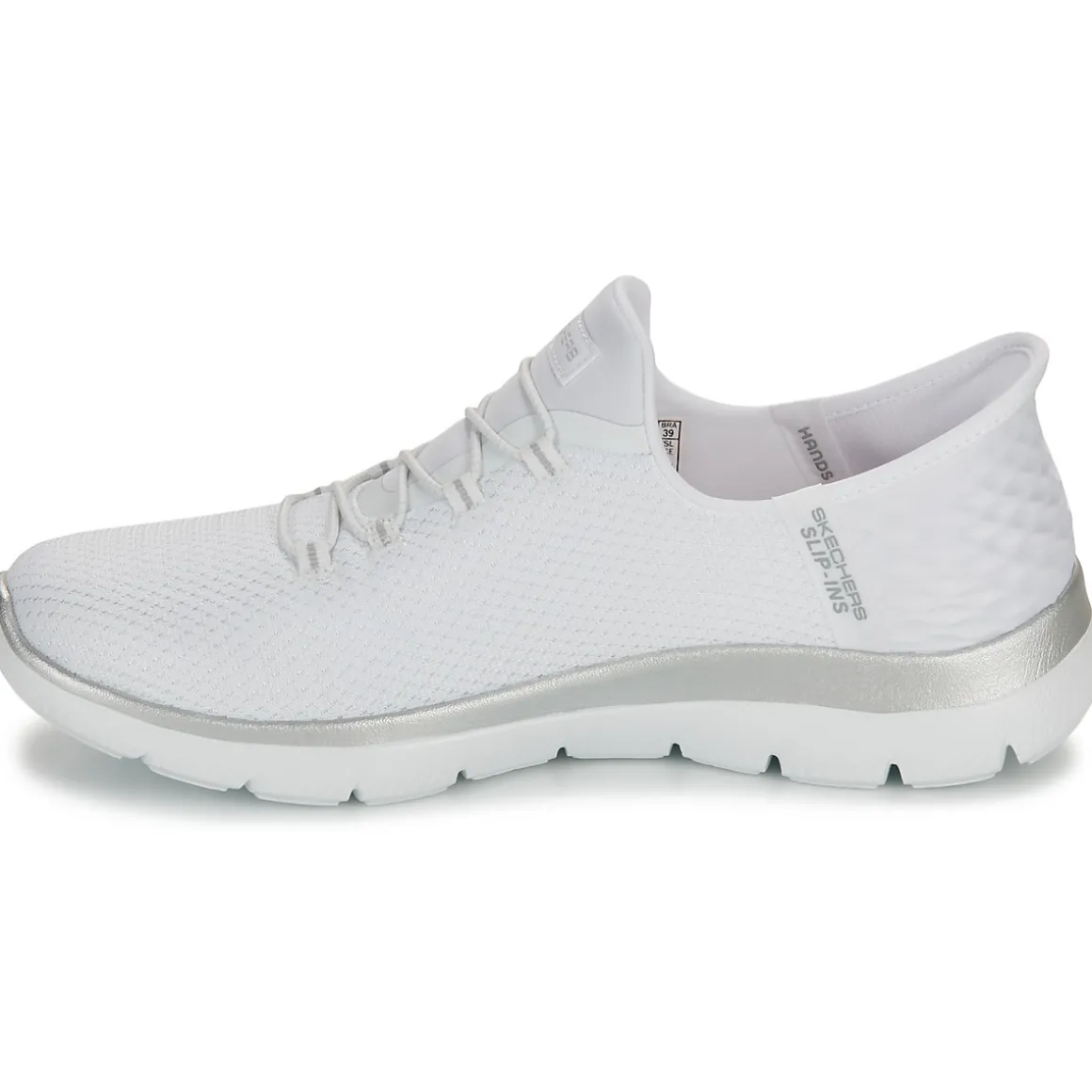 Principales caractéristiquesSkechers Hands Free Slip-ins® pour un ajustement facile sans les mainsLe Heel Pillow™ exclusif maintient votre pied bien en placeSemelle intérieure Skechers Air-Cooled Memory Foam® pour un confort coussinéFabriqué avec des matériaux 100% veganDétails de conceptionTige en maille avec lacets extensiblesSemelle intermédiaire légère et amortissante à garniture métalliqueSemelle de traction flexibleLavable en machine